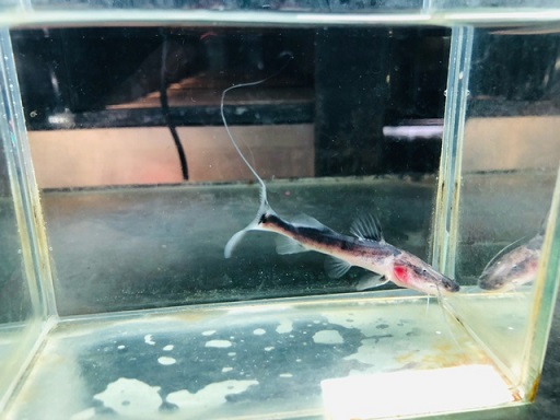 赤ヒレと赤虫をあげています。